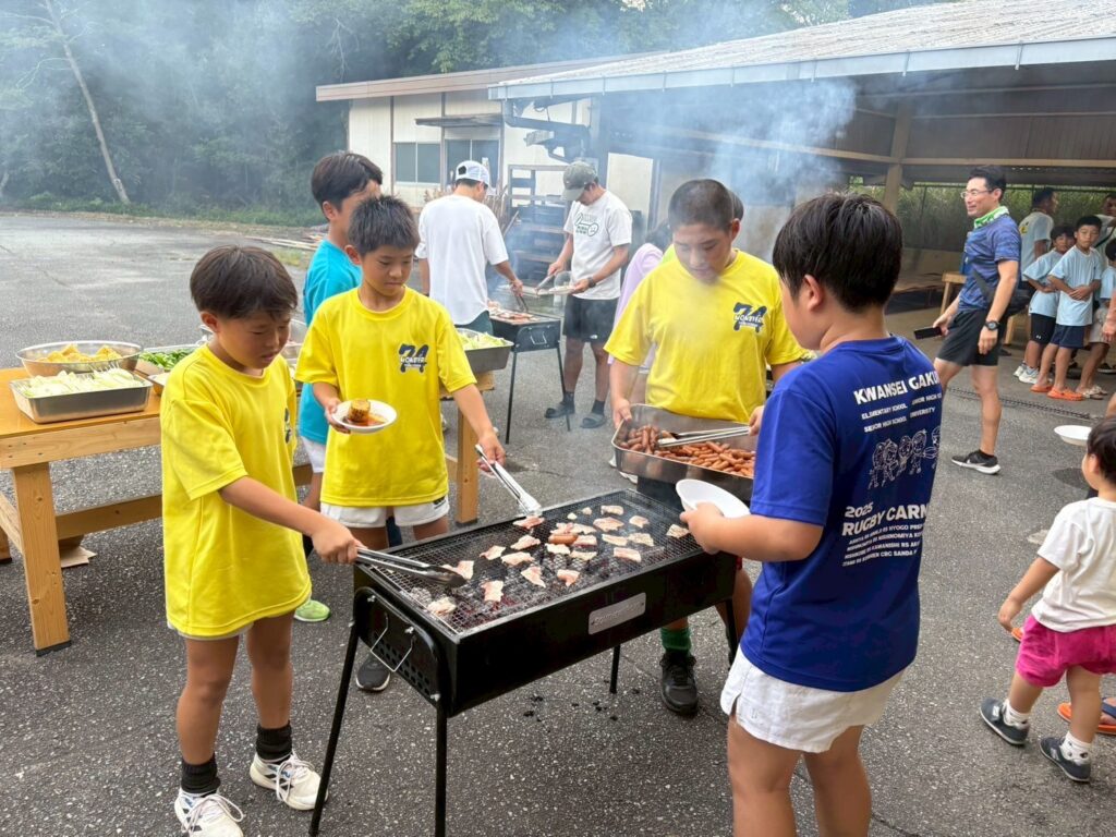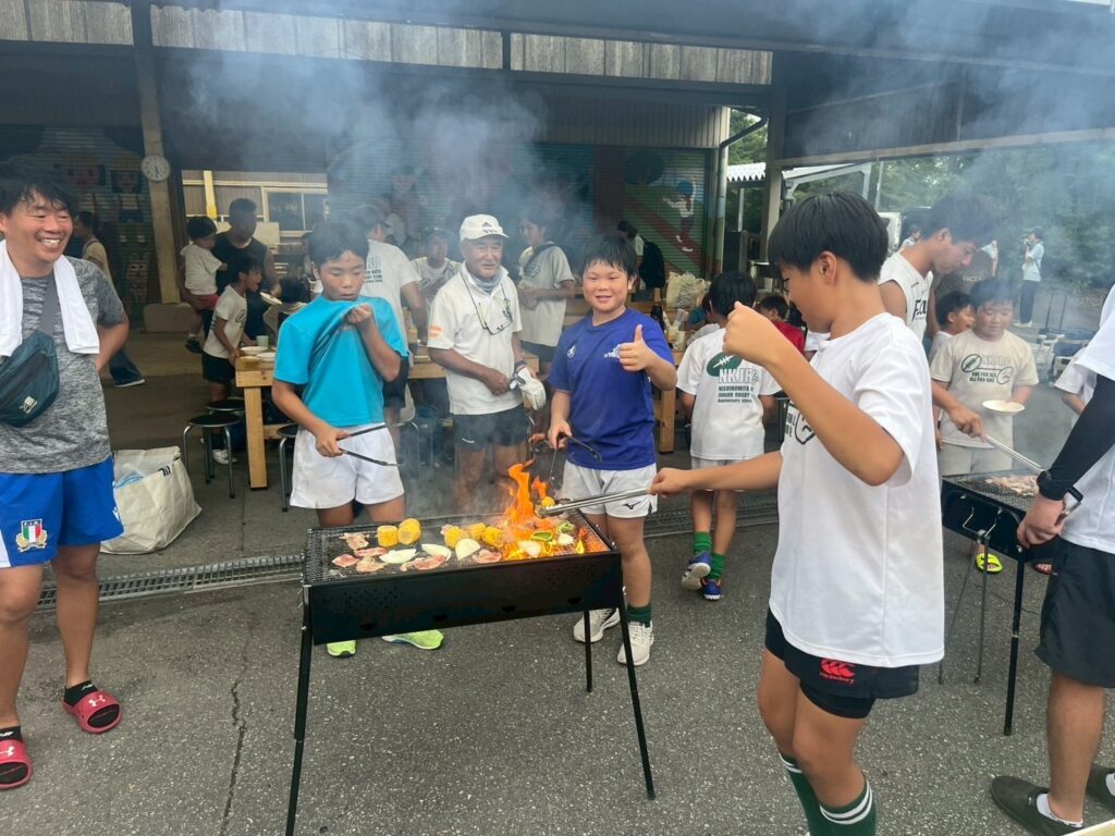 1日目の午前と午後はそれぞれ学年ごとに練習やミーティングを行い、夜はみんなでバーベキューを楽しみました🍖✨