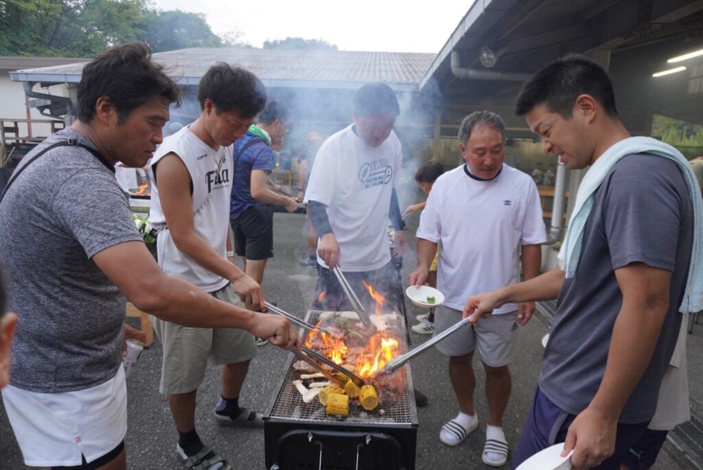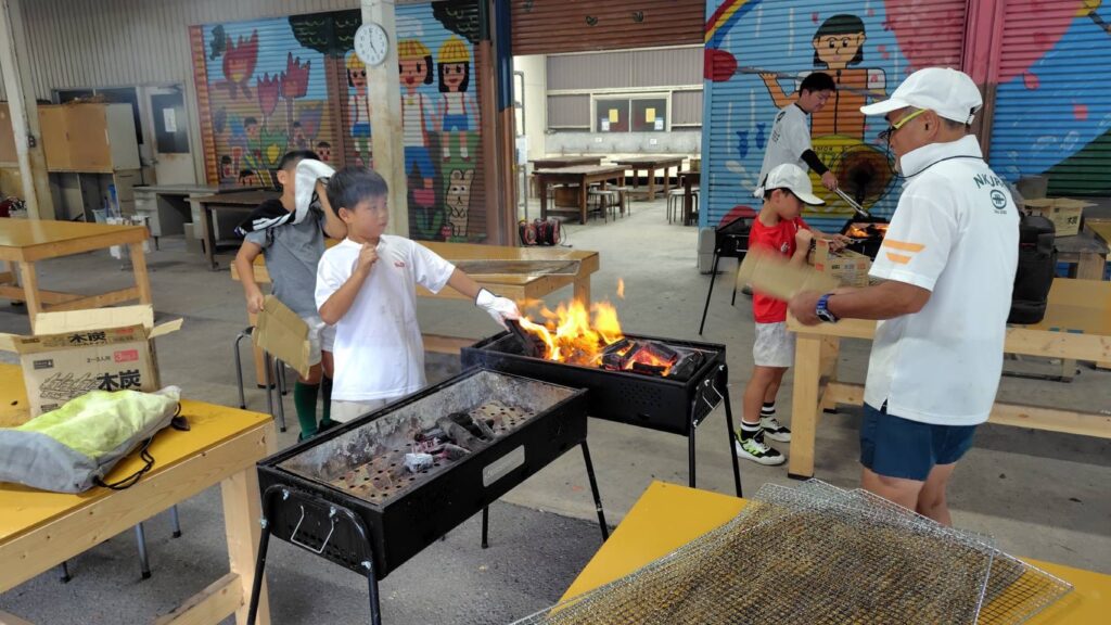 会長と3年生が一生懸命火を起こし、上級生やコーチたちが頑張って焼き続けました🔥
