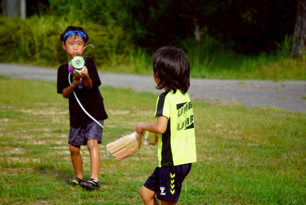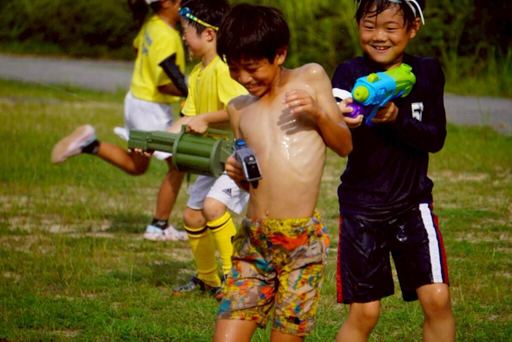 2年生はお待ちかね、引き続き神戸中央さんと合同でプール水遊び大会!!もはやこれをメインに合宿に来たと言っても過言ではない?!くらいの入念な水鉄砲の準備と、仲間に声をかけあうチームワークを発揮🔫💦