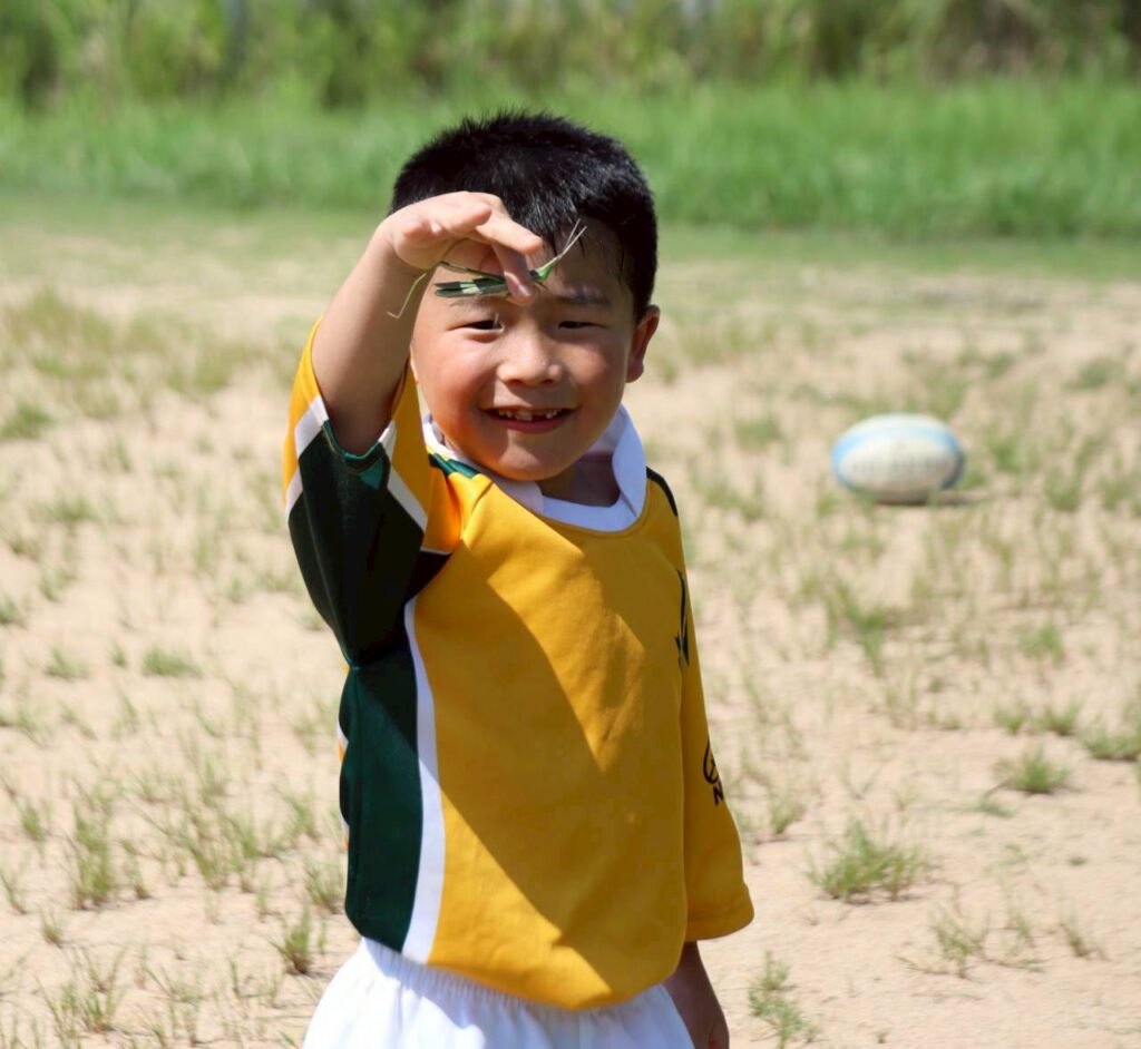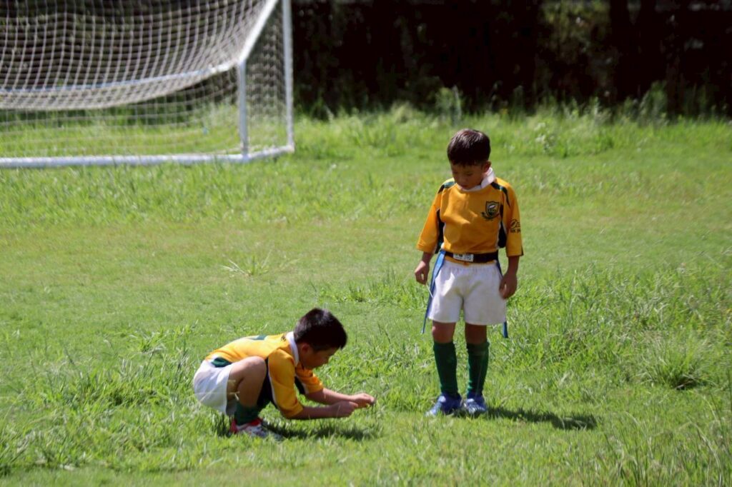 大きなバッタに大興奮の1年生🙌大自然の中でラグビーができる醍醐味でしたね!