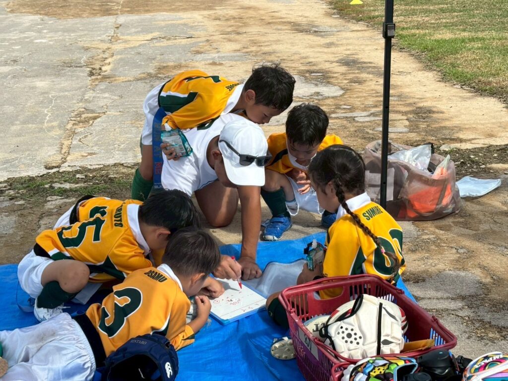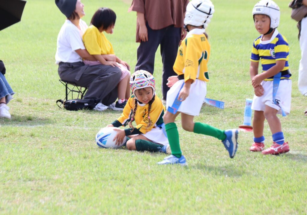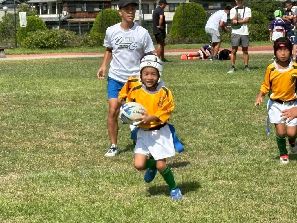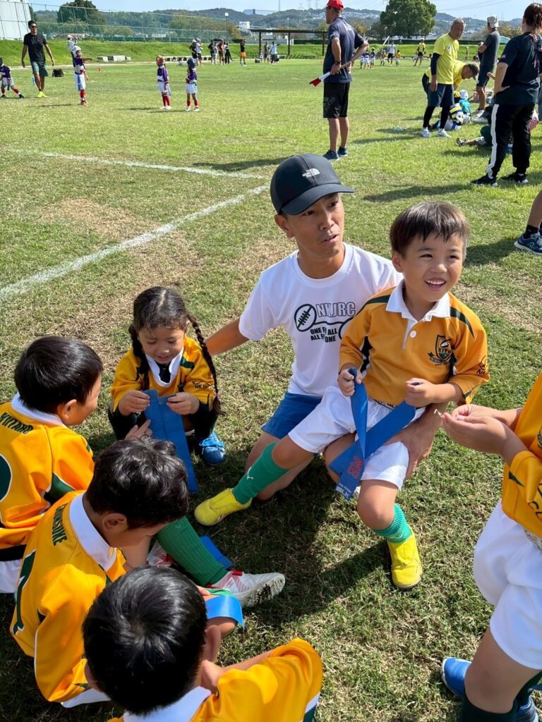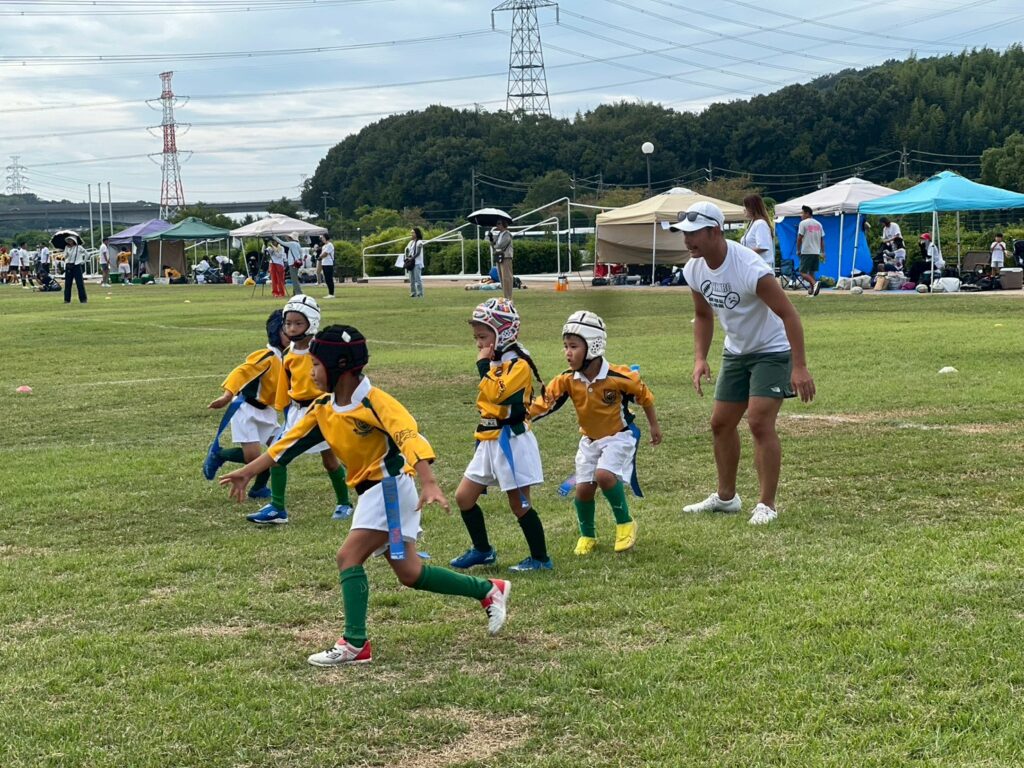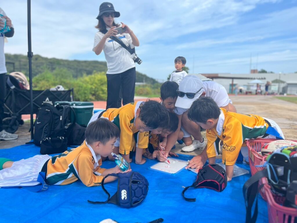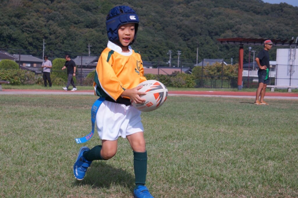 試合の感想を尋ねると、「みんなでがんばって走ったからトライをたくさん決めることができた。走りすぎて試合のあとに足が痛くなった。3試合勝てたことが嬉しかったけど、『最後の試合で引き分けになったことがコーチは悔しい』と言われたときに、僕も悔しく思った。もっとタグを取る練習をがんばって、今度は全部勝ちにいきたいと思った」と言っていました。