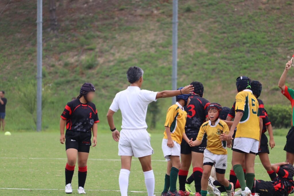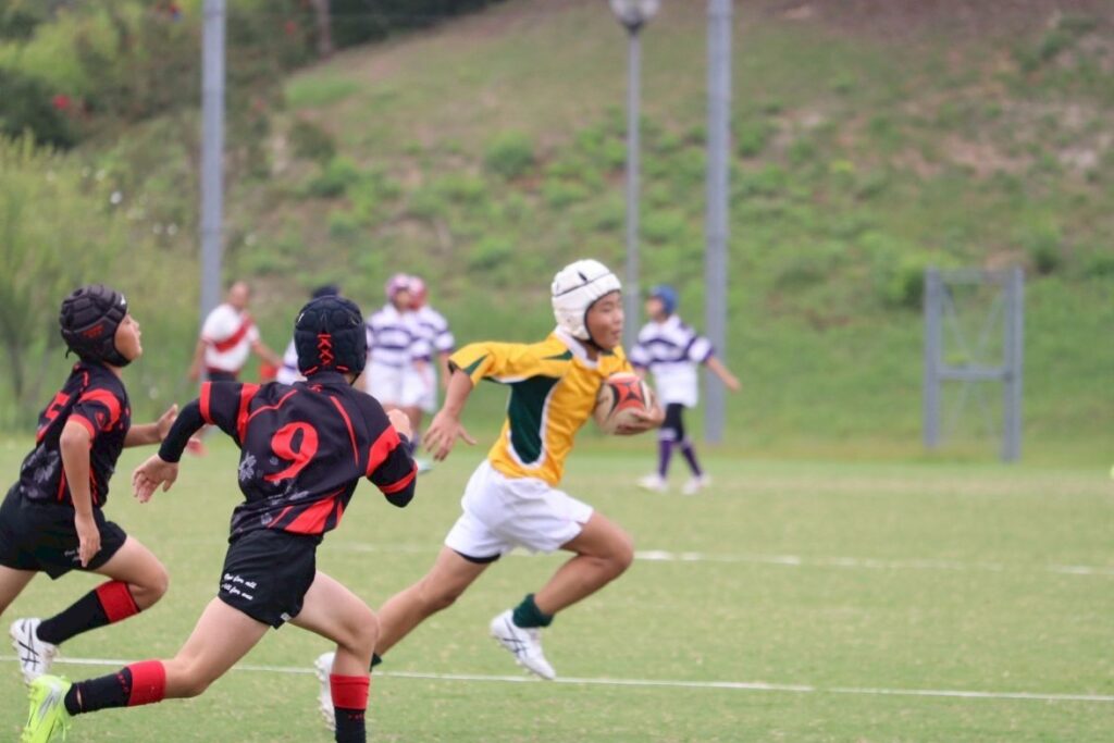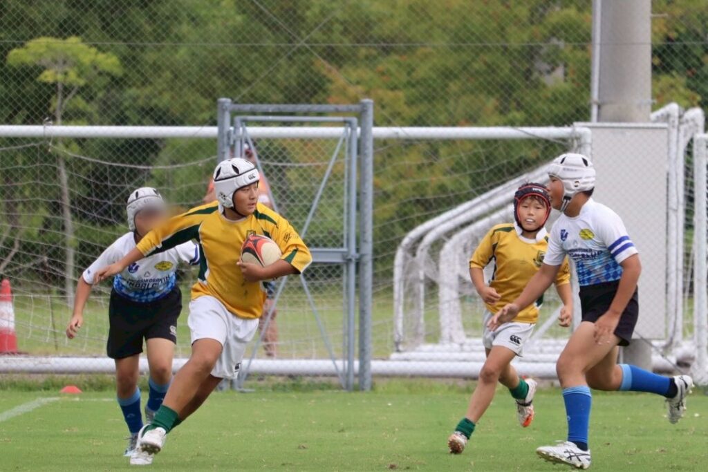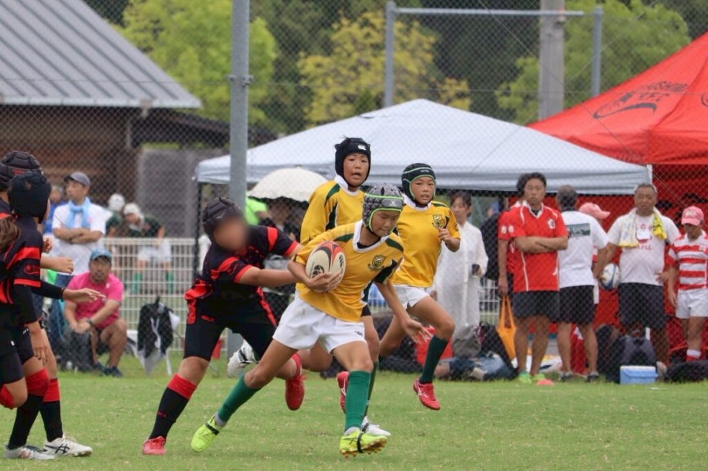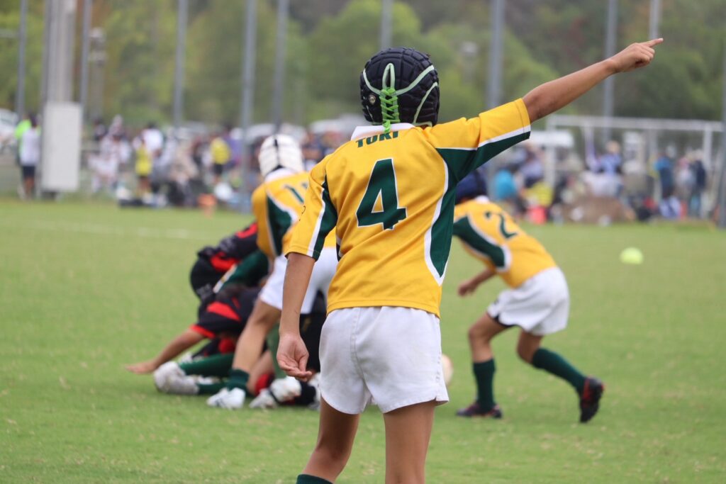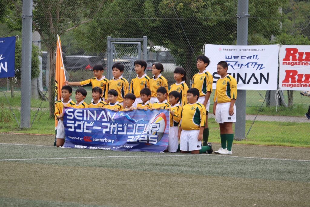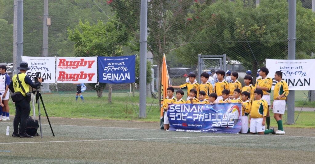 全国の強豪チームが集う中、日頃の練習成果を発揮し、全力でプレーしました。試合開始前には、ラグビーマガジンによる動画撮影があり、6年生の角谷キャプテンによるチーム紹介も行われました。