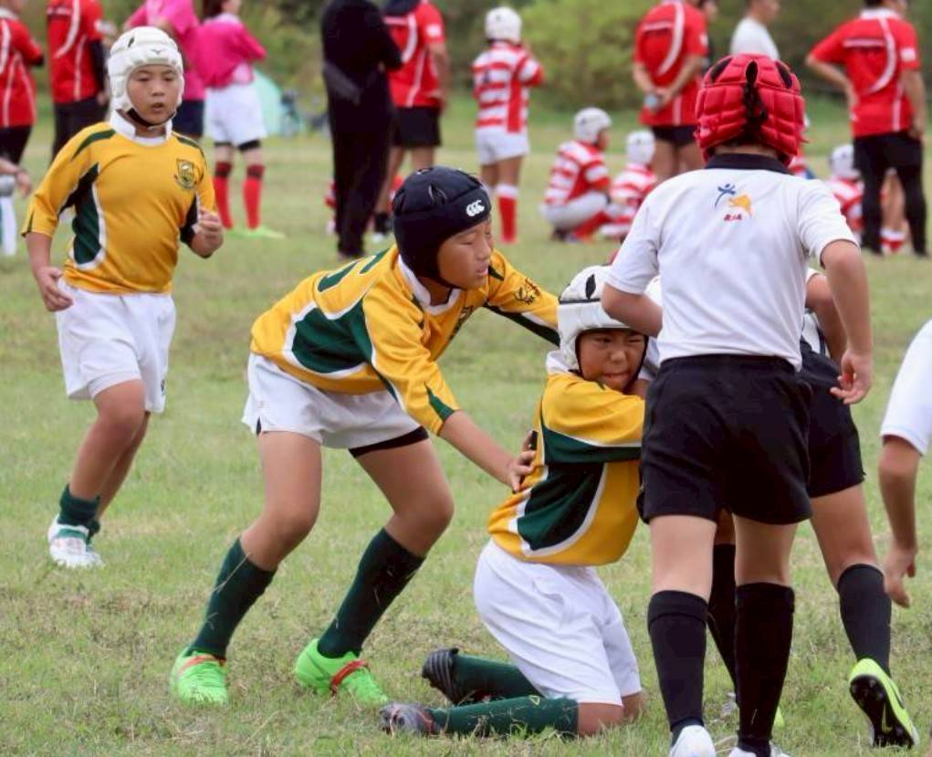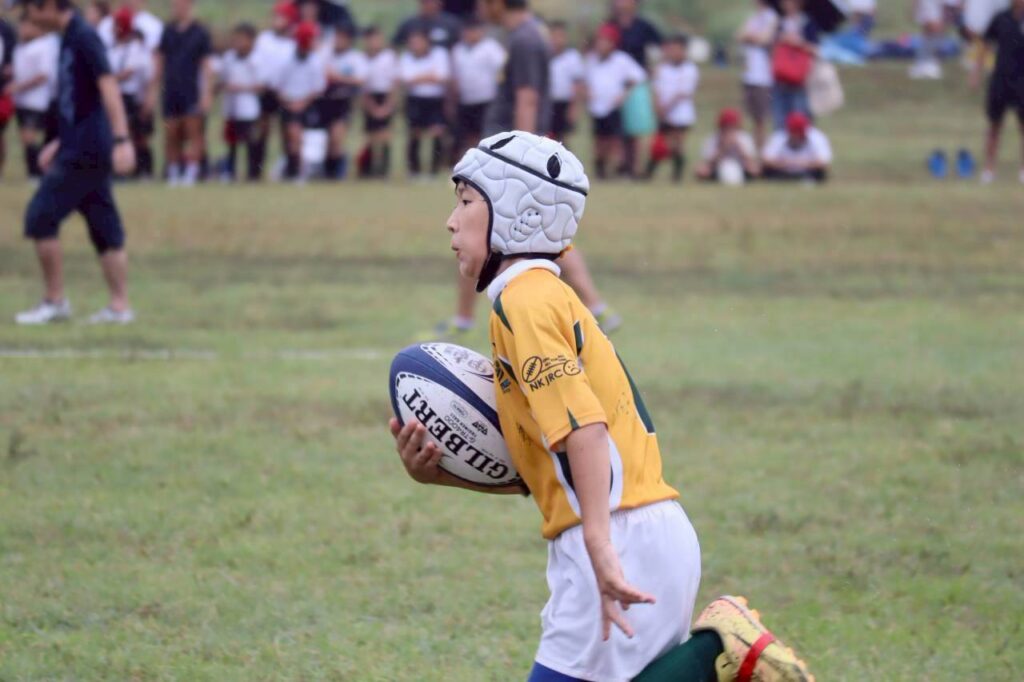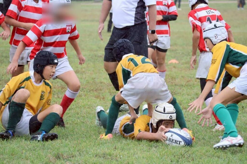 9人制のミニラグビーで今回は10人しか参加選手がいませんでした。ギリギリの人数で挑みました。コーチも育成会もハラハラしながら試合を見守ります。ほとんどの選手がフル出場です。怪我人が出て途中から8人になった試合もありました。やったことがないポジションで出た選手もいました。それでも諦めずに最後まで戦いました。