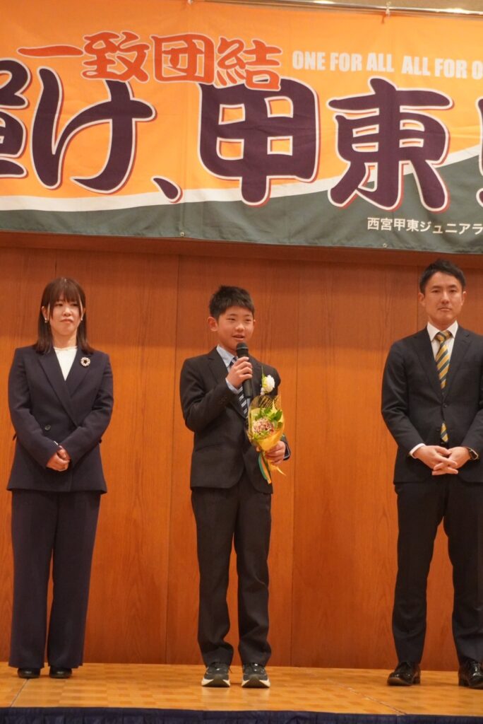 合宿で一緒に遊んでくれたこと、練習でいろいろと教えてくれたこと、県大会前にエールとアドバイスをくれたこと。優しかった6年生との思い出はたくさん!もう4月からグラウンドにいないのは寂しいですが、またいつでも甲東に遊びに来てください♪